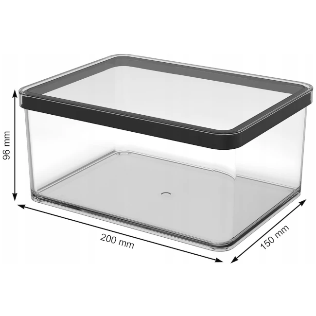 Pojemnik na żywność Rotho Loft o pojemności 2,25 litra to idealne rozwiązanie do przechowywania różnorodnych produktów spożywczych. Przezroczyste ścianki pozwalają na szybkie sprawdzenie zawartości, a czarna pokrywka z uszczelką zapewnia pełną szczelność, chroniąc produkty przed utratą świeżości. To doskonały wybór do przechowywania artykułów sypkich, makaronów, płatków śniadaniowych, owoców czy słodyczy, który pomoże Ci utrzymać porządek w kuchni.